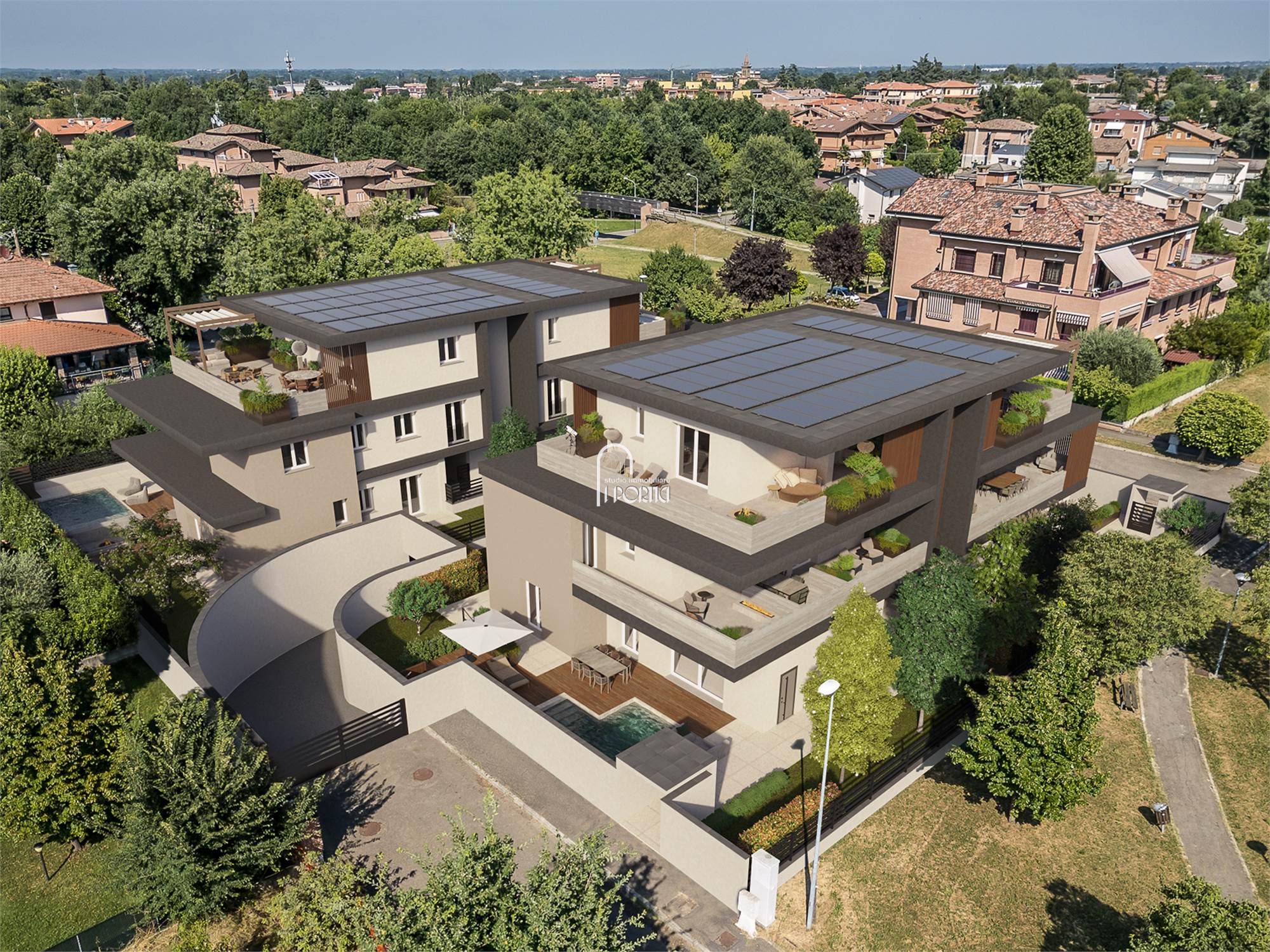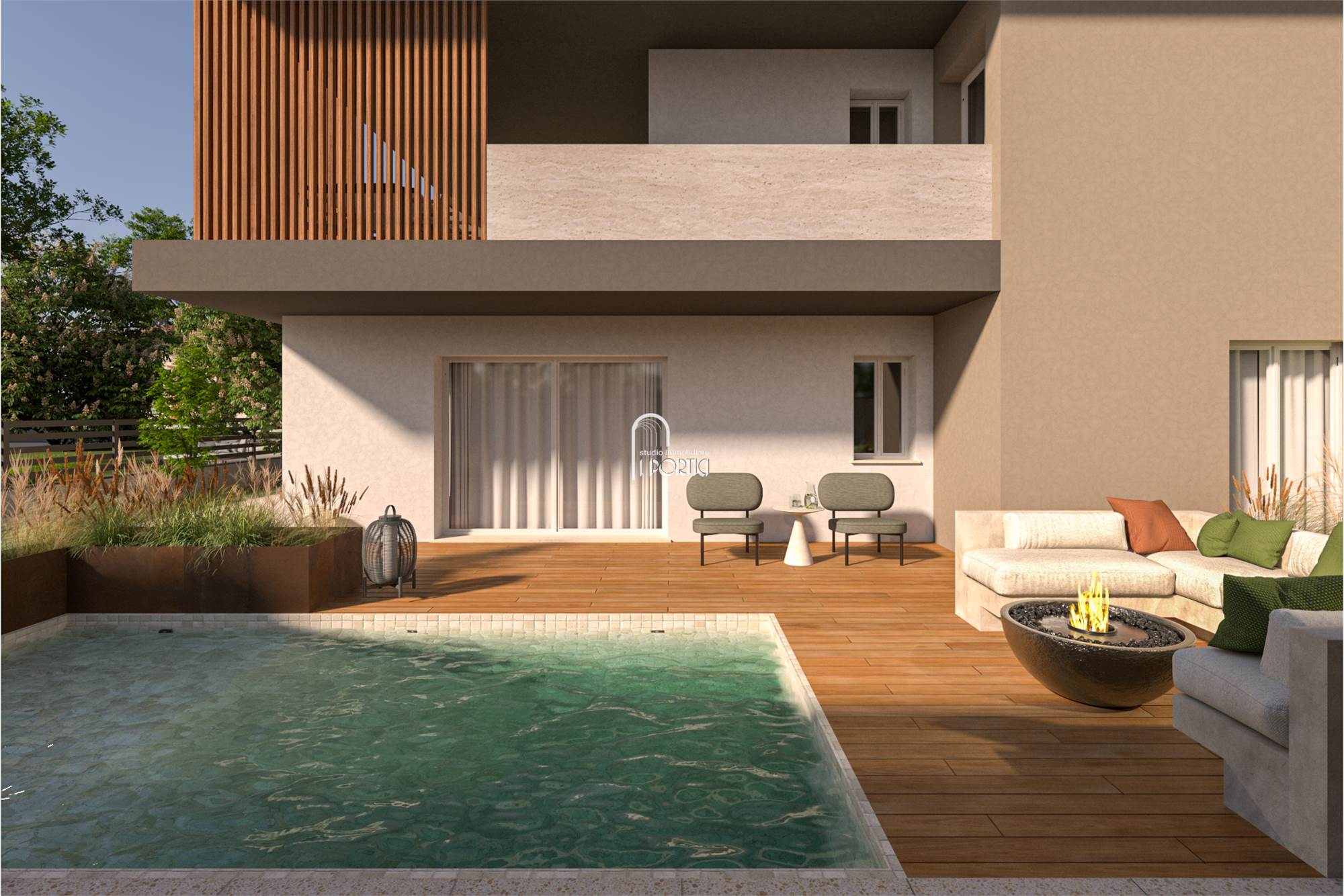 Intervento immobiliare situato in zona verde a pochi passi dal parco Rio dei Gamberi e a pochi minuti dal centro di Castelnuovo che consiste nella realizzazione di due edifici con 5 lussuosi appartamenti ciascuno.