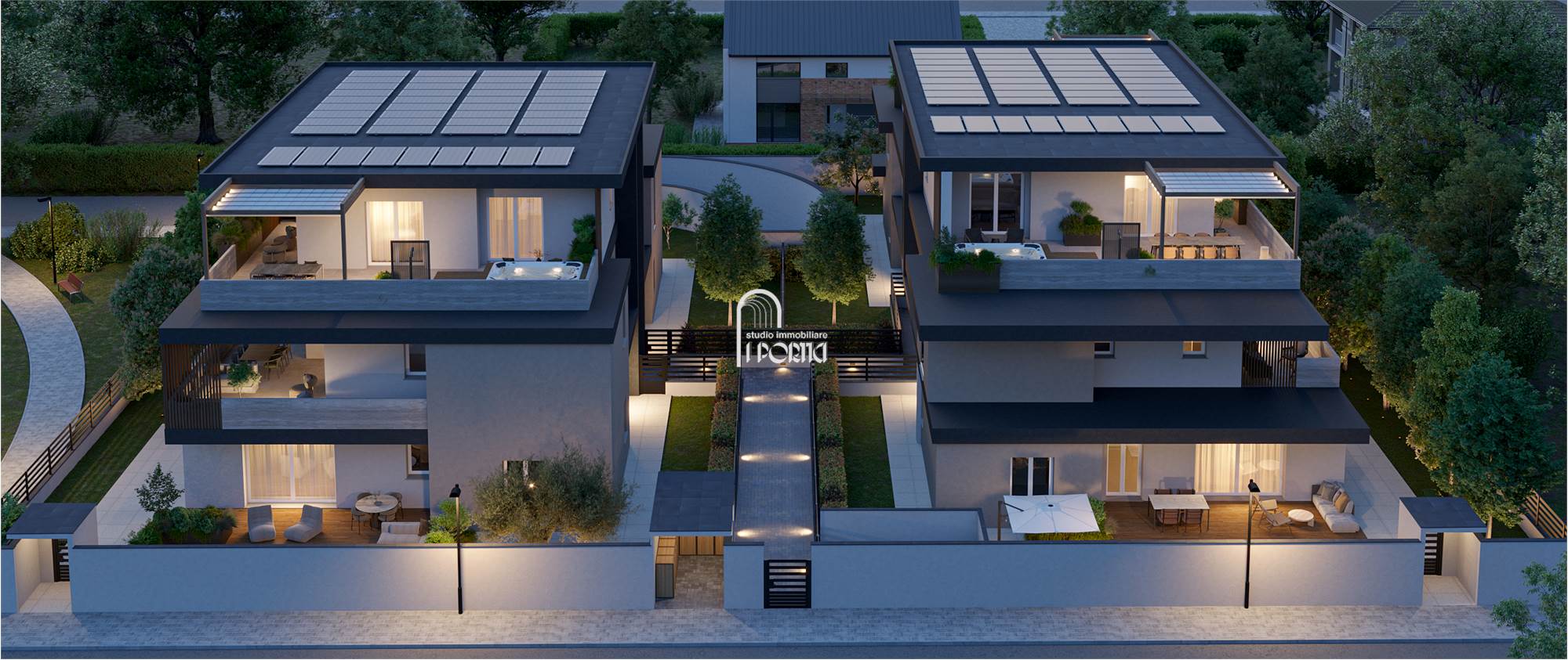 Prestigioso intervento immobiliare situato in zona verde a pochi passi dal Parco Rio dei Gamberi e a pochi minuti dal centro di Castelnuovo che consiste nella realizzazione di due edifici con 5 lussuosi appartamenti ciascuno.