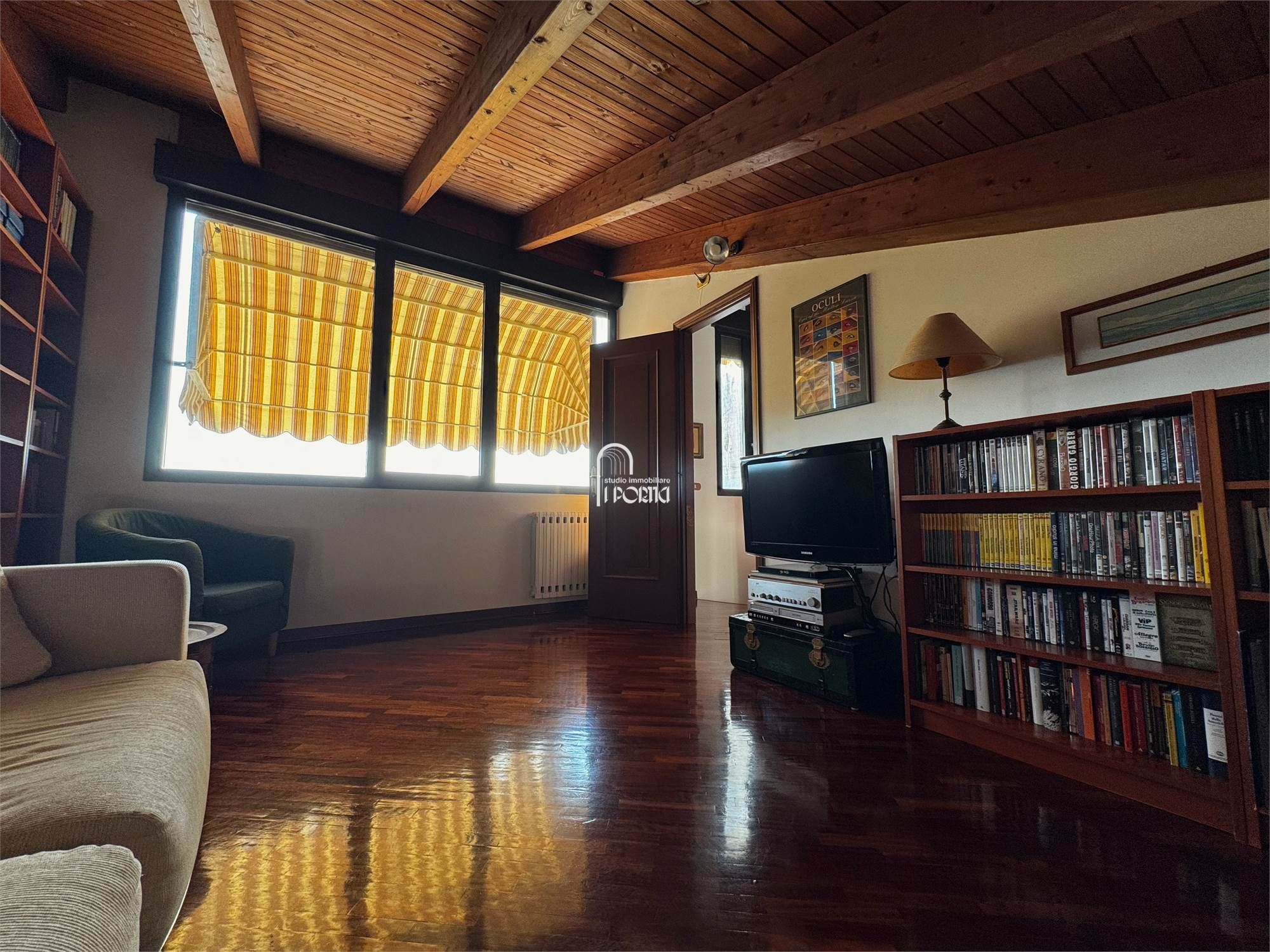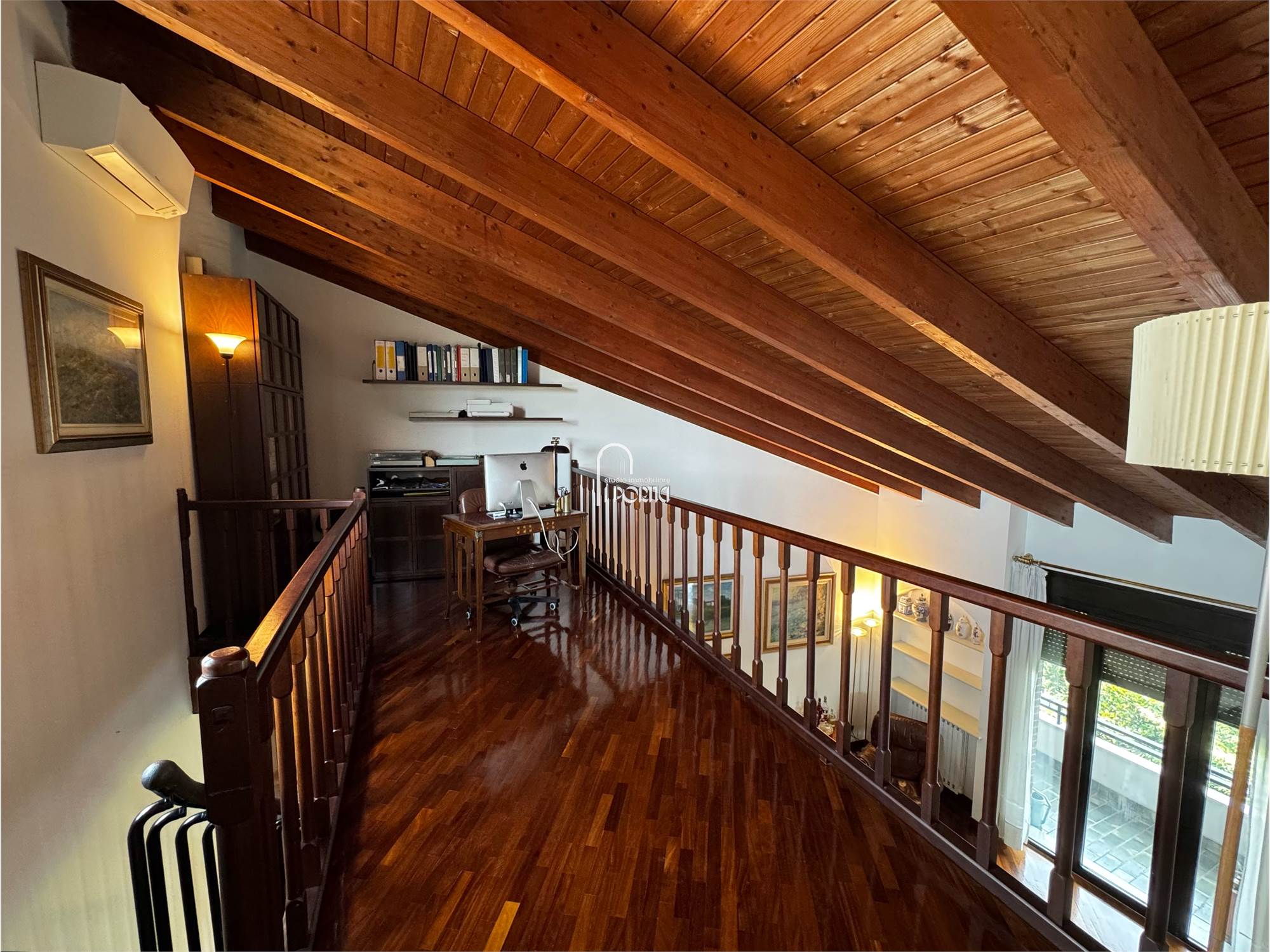 Ottime condizioni, riscaldamento autonomo, aria condizionata in tutti gli ambienti, soffitto a travi a vista e pavimenti pregiati in legno massello in quasi tutti gli ambienti, tapparelle motorizzate, impianto di allarme, cassaforte, allacciamento open fibra.
