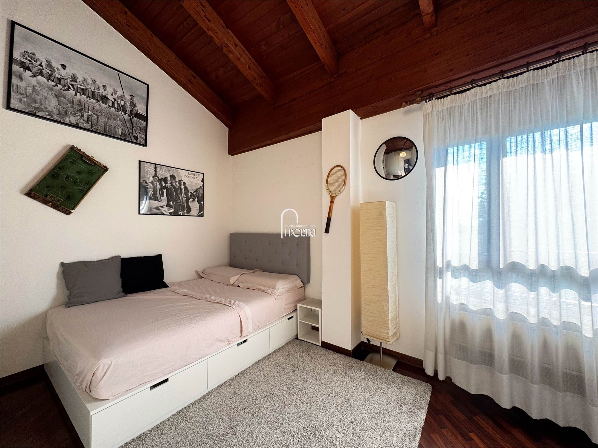 Doppio garage finestrato con soppalco calpestabile.