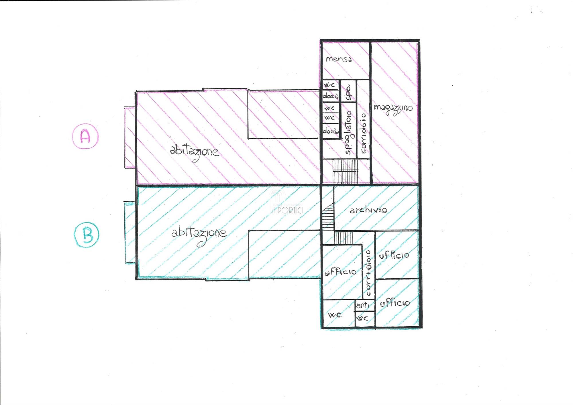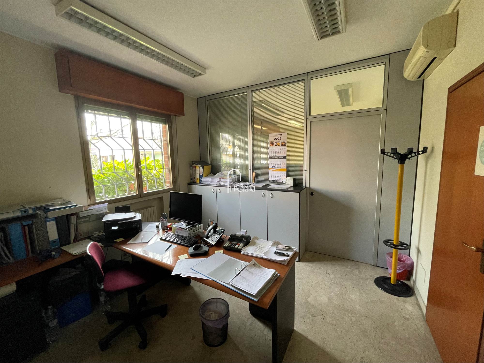 Proponiamo in vendita una porzione di fabbricato di circa 1025 mq. disposta su P.T. e P.1. attualmente libera, costituita da un capannone/laboratorio, locali ad uso uffici, servizi, sala mostra, un appartamento di mq. 150, un garage oltre ad area cortiliva.